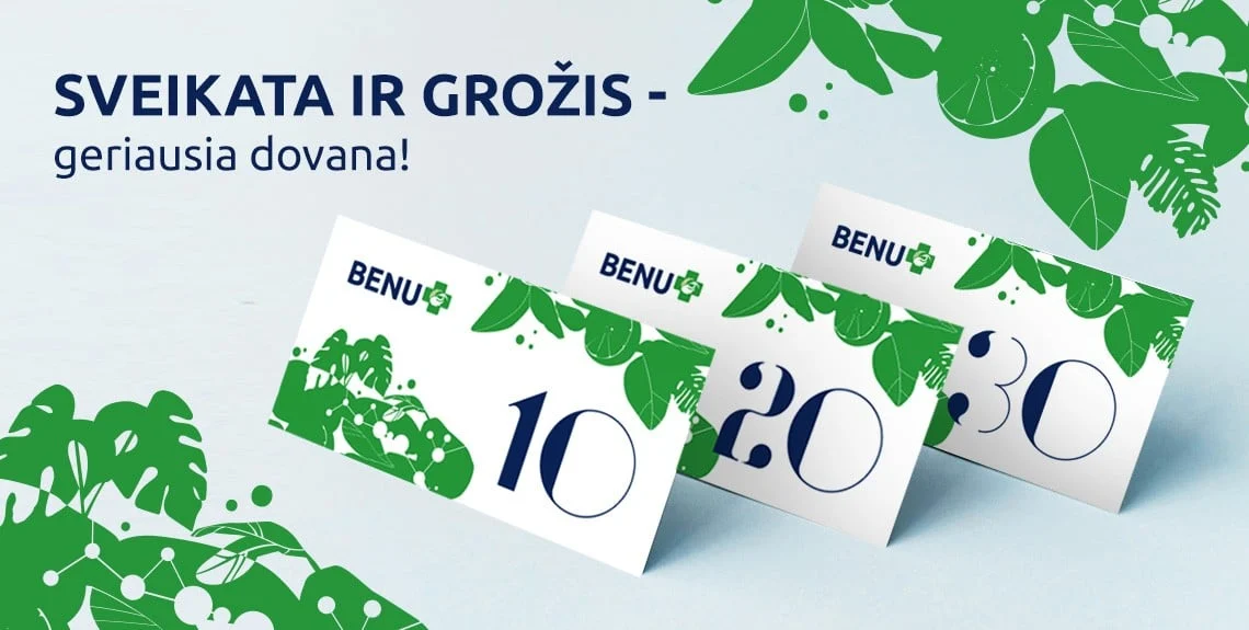 - Šia dovanų kortele galima atsiskaityti visose fizinėse BENU vaistinėse Lietuvoje.