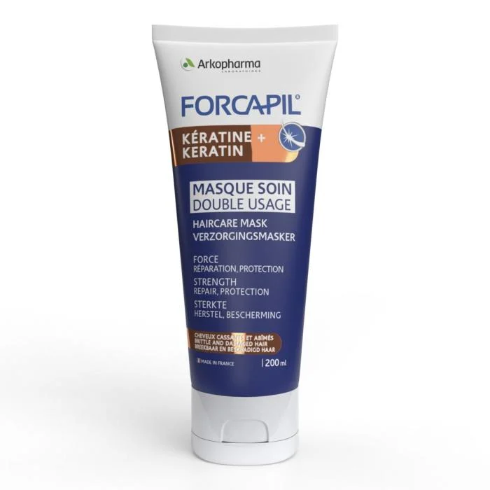 FORCAPIL® KERATIN+ HAIRCARE MASK- dvejopo naudojimo plaukų priežiūros kaukė silpniems ir pažeistiems plaukams, skirta naudoti dviem būdais: kaip kondicionierių po kiekvieno plovimo arba kaip kaukę intensyviam plaukų puoselėjimui.