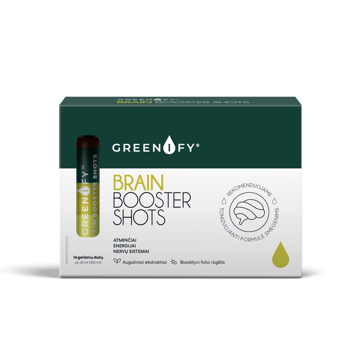 GREENIFY Brain Booster Shots - išgryninta, greičiau įsisavinama formulė atminčiai, energijai,