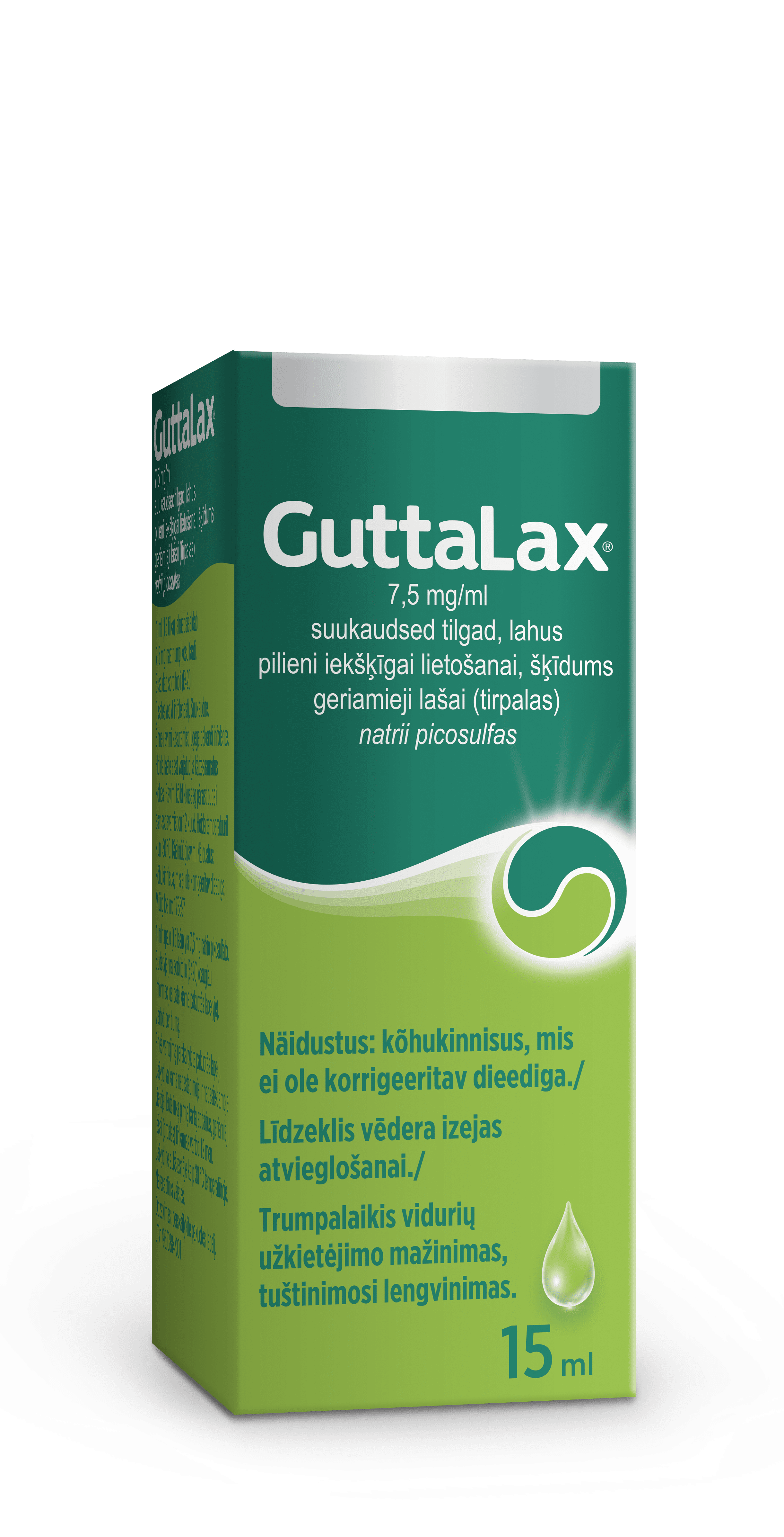 Peržiūrėti visus produktusGuttalax 7,5 mg/ml geriamieji lašai (tirpalas) 15 ml