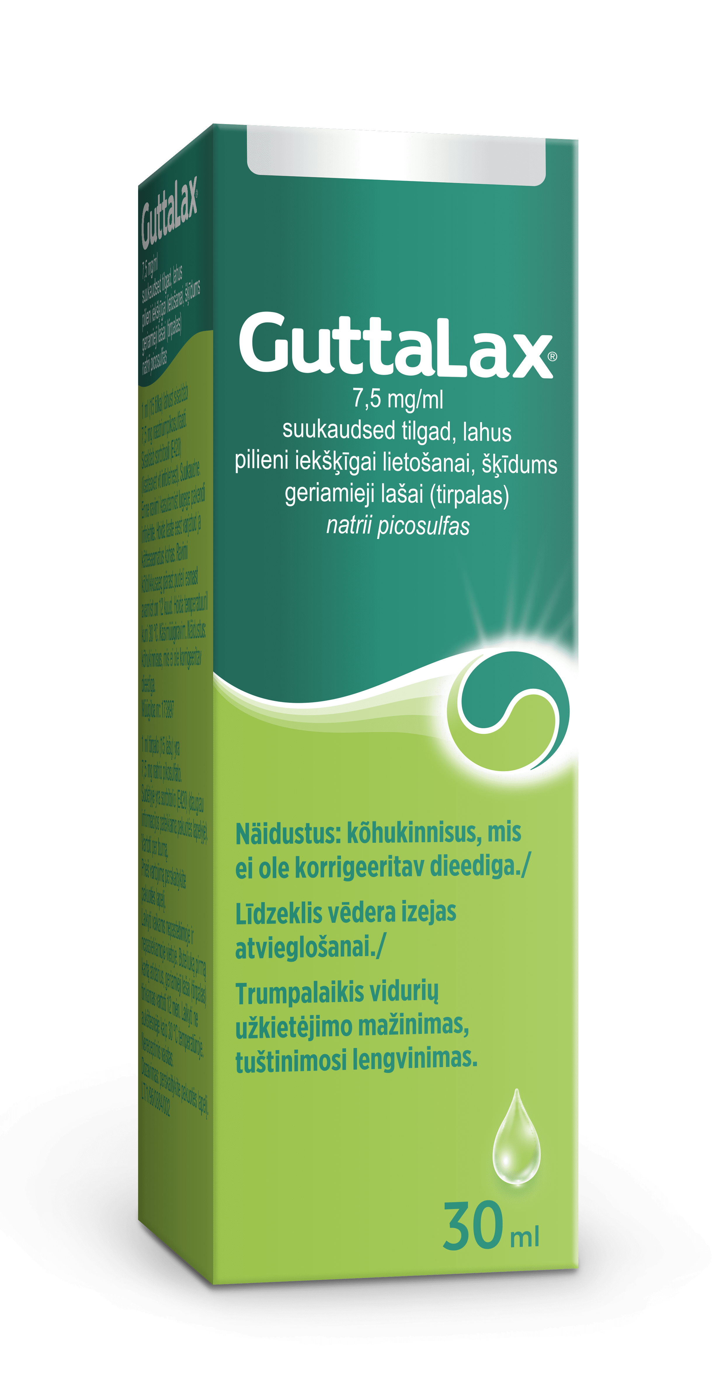 Peržiūrėti visus produktusGuttalax 7,5 mg/ml geriamieji lašai (tirpalas) 30 ml