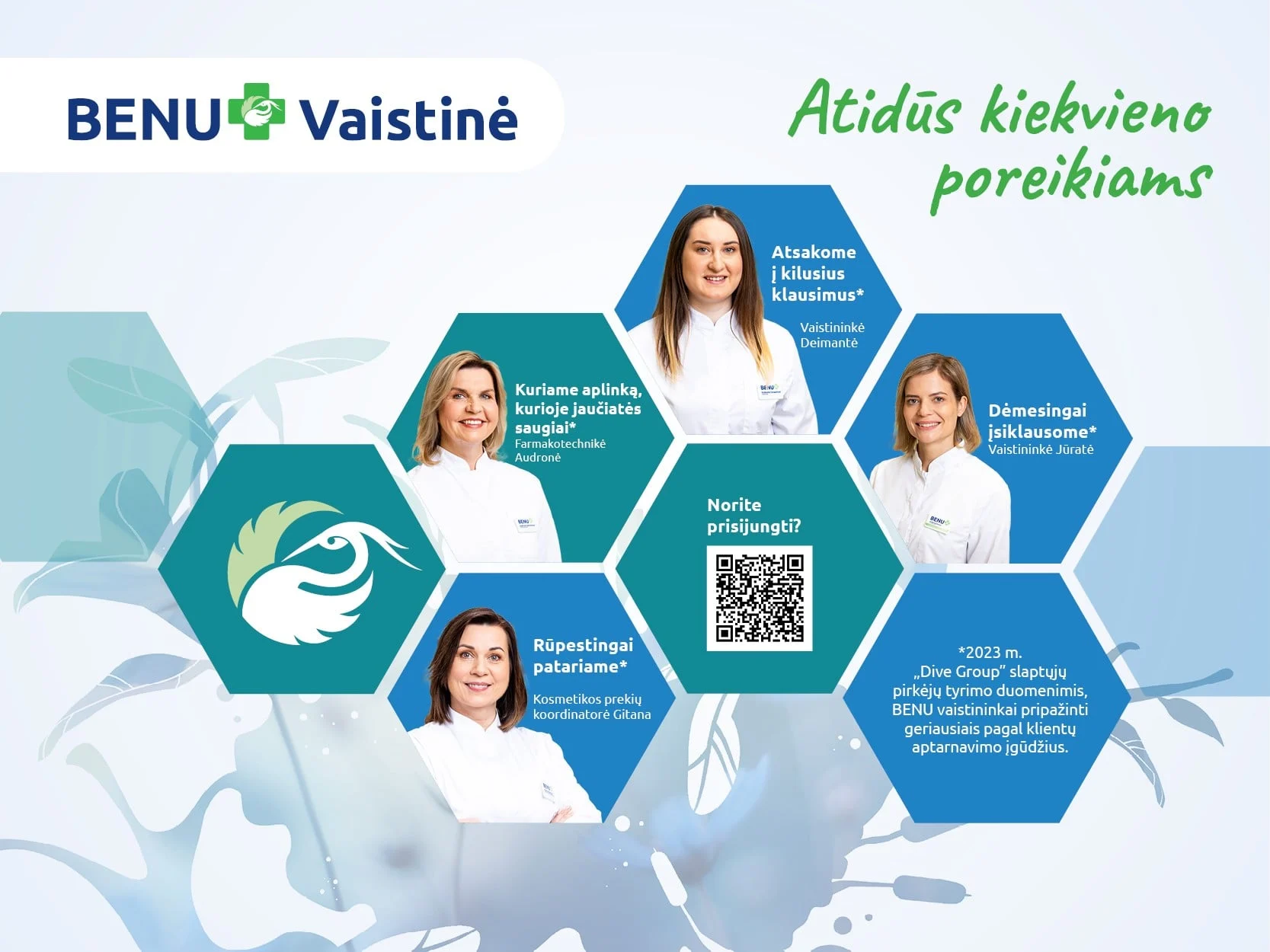 Praktika leidžia įtvirtinti universitete (ar kolegijoje) įgytas profesines žinias, susipažinti su kasdieniu vaistinių darbu, bendrauti su klientais ir dalyvauti konsultavimo procese bei įgyti naujų praktinių įgūdžių ir žinių vadovaujant profesionaliems vaistininkams. Praktika – tai geras būdas užsitikrinti gerą ir mėgstamą darbą baigus studijas. BENU vaistinių tinklas turi daugiau nei 90 vaistinių visoje Lietuvoje, kuriose tikrai rasime Jums tinkamą praktikos vietą.