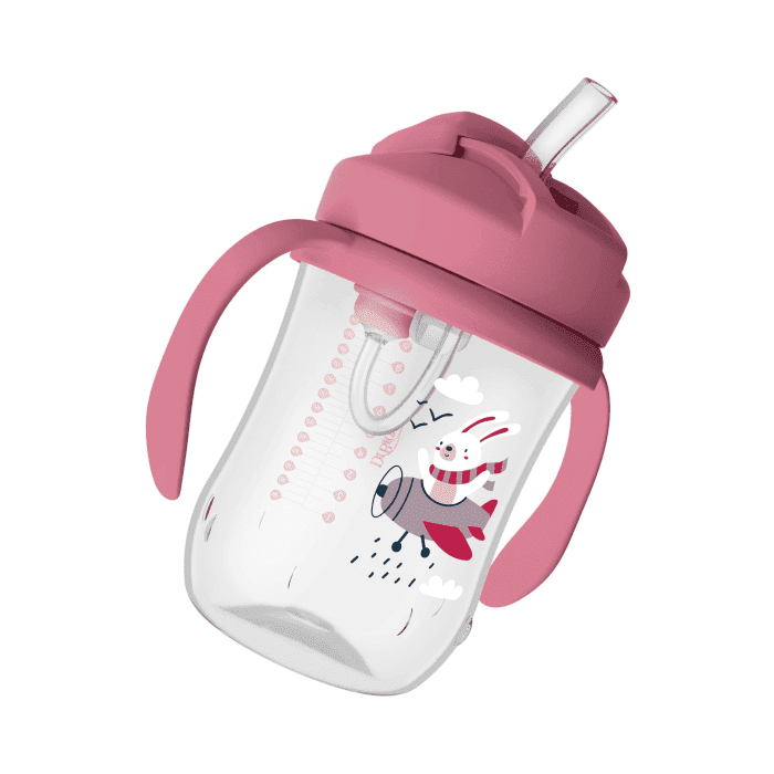 DR. BROWN'S gertuvė su šiaudeliu ir svareliu, 270 ml, rožinė N1