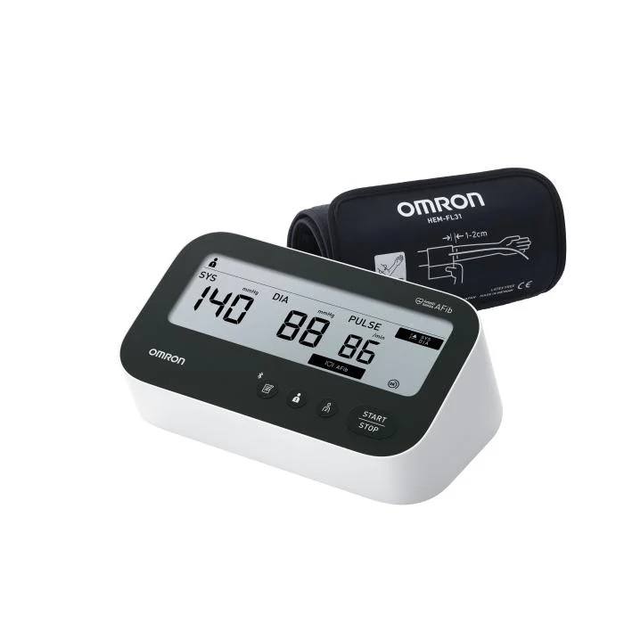 OMRON M4 Intelli IT yra komplektuojamas su Intelli Wrap manžete ir dėka to gaunami tikslūs matavimo rezultatai. Matuoklis aptinka nereguliarų širdies plakimą matavimo metu ir perspėja ekrane kartu su matavimo rezultatais. • Matuoklis aptinka galimą prieširdžių virpėjimą ir atliekant matavimą namų sąlygomis naudotojas gali būti ramus dėl gaunamų rezultatų. Kitos savybės: Intelli Wrap manžetė (22-42 cm) - užtikrina, kad kraujo spaudimas bus išmatuotas netgi blogai užsidėjus manžetę. Teisingo manžetės uždėjimo sistema - matuoklis ekrane parodys, ar teisingai buvo uždėta manžetė, tam, kad būtų gauti tikslūs matavimo rezultatai. Hipertenzijos indikatorius - įspėja apie padidėjusį kraujospūdį. Kūno judėjimo indikatorius - labai svarbu įvertinti matavimo tikslumą. Jeigu naudotojas juda arba kalba matavimo metu, ekrane kartu su matavimo rezultatais bus parodytas judėjimo simbolis. Galimybė kraujospūdžio matavimo duomenis perkelti į išmanųjį telefoną, kompiuterį, planšetinį kompiuterį. Lengva ir patogu naudoti. Atmintis: 2 naudotojai bei 60 paskutinių matavimo rezultatų su data ir laiku bei svečio režimas. Paskutinių 3 matavimų vidurkis. Matuoklis kliniškai patikrintas pagal tarptautinį protokolą bei tinkamas naudoti visai visuomenei, nėščiosioms bei sergantiems diabetu. Garantija: monitoriui 5 metai, manžetei - 2 metai.