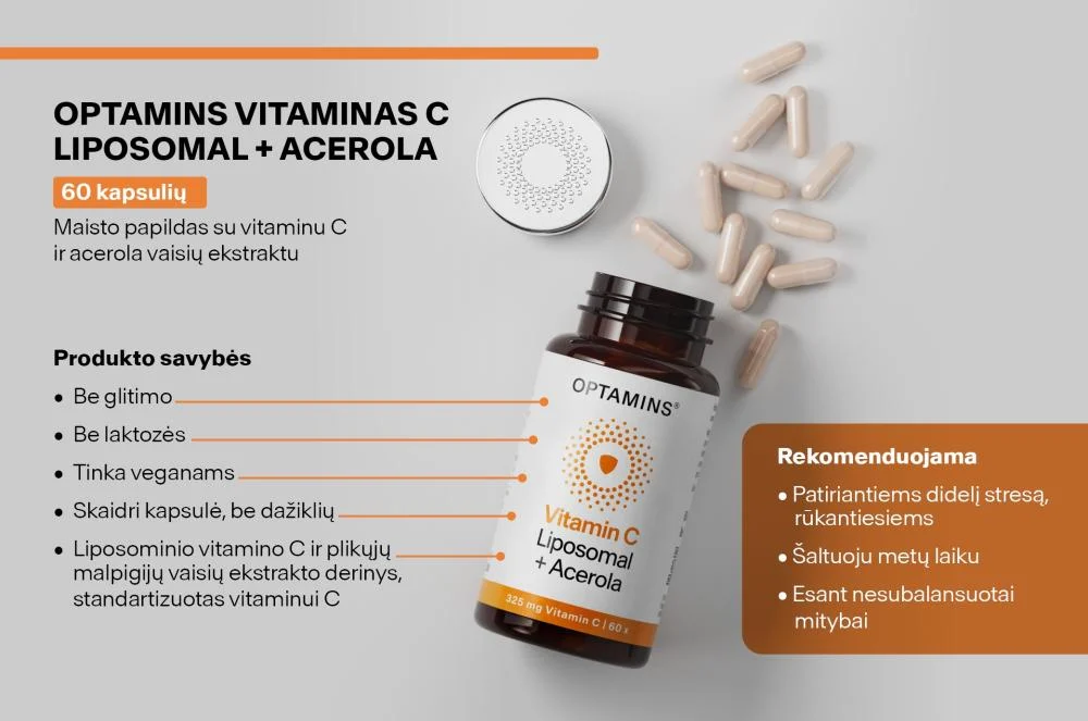 Liposovit®-C yra inovatyvus liposominis vitaminas C smulkių, laisvai byrančių miltelių pavidalu, skirtas aprūpinti organizmą išaugus L-askorbo rūgšties poreikiui. OPTAMINS Vitamin C Liposomal + Acerola papildai sukurti naudojant pažangią nanokapsuliavimo technologiją, kuri preparatui suteikia didesnį biologinį prieinamumą, t. y. padeda gerau įsisavinti vitaminą C.
