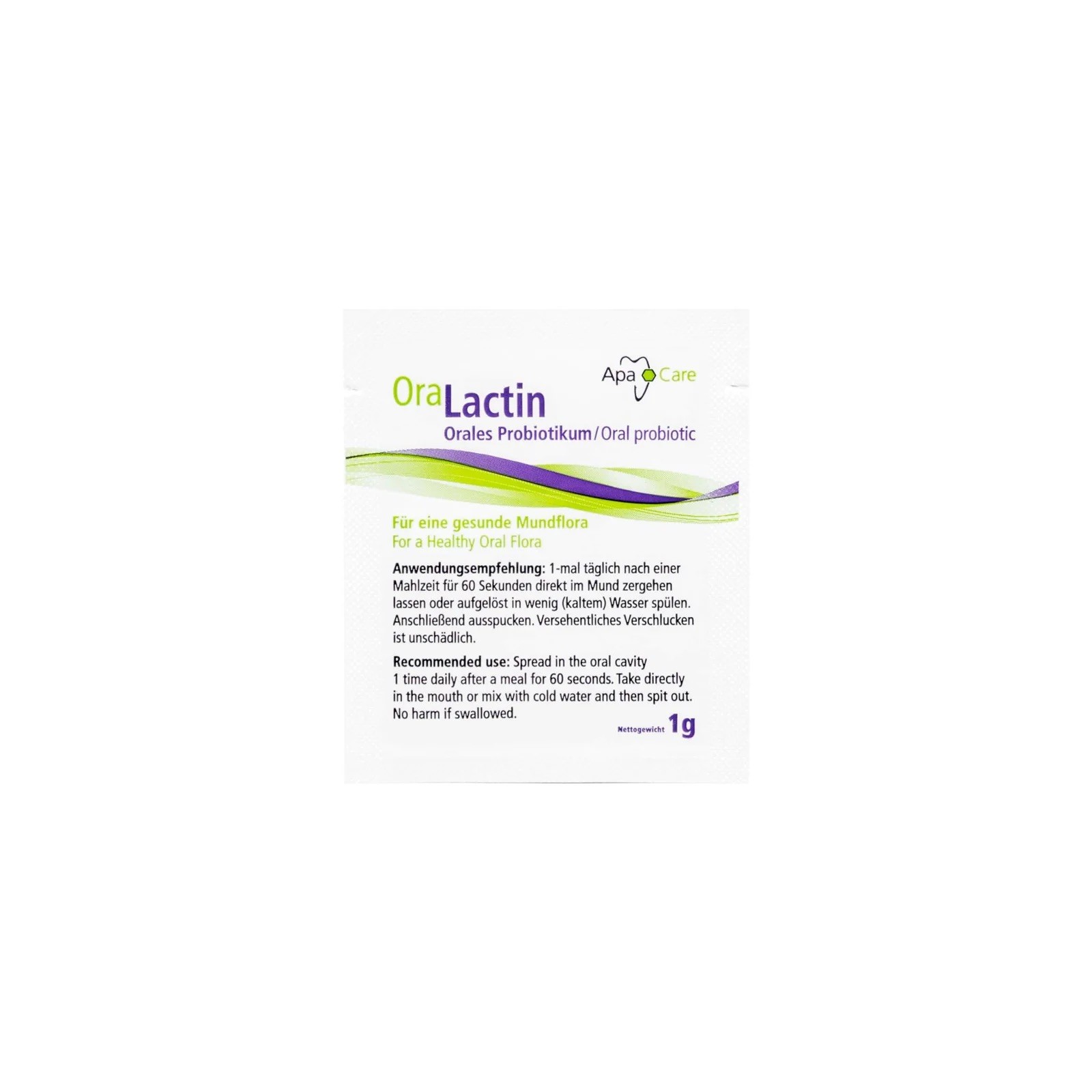 Vartojimas: vieną kartą per dieną po valgio ištirpinkite vieną maišelį (1 g) burnos ertmėje. Palaikius bent 60 sekundžių galite išspjauti. Netyčia nurijus šalutinio poveikio nėra (t.y. nurijimas nekenksmingas). Miltelius galite ištirpinti tiesiog burnos ertmėje arba sumaišius su mažu vandens kiekiu.