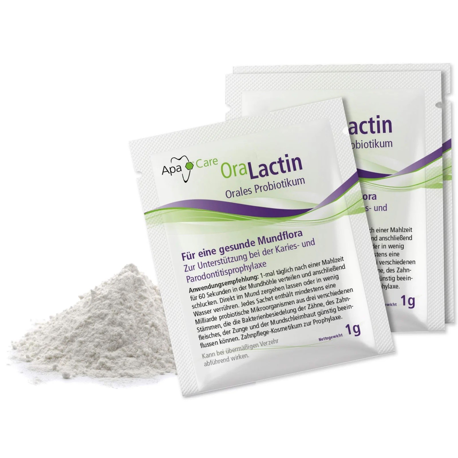OraLactin“ burnos probiotikai yra natūrali dantų ir burnos priežiūros kosmetikos priemonė kasdieniam vartojimui. Gaivaus skonio milteliuose yra ne mažiau kaip vienas milijardas probiotinių mikroorganizmų iš trijų skirtingų padermių (žr. sudėtį). Šie probiotiniai mikroorganizmai kolonizuoja burnos ertmę ir taip gali padėti išlaikyti gerą burnos mikroflorą1. Gera burnos mikroflora yra itin svarbu: naikinant blogą burnos kvapą