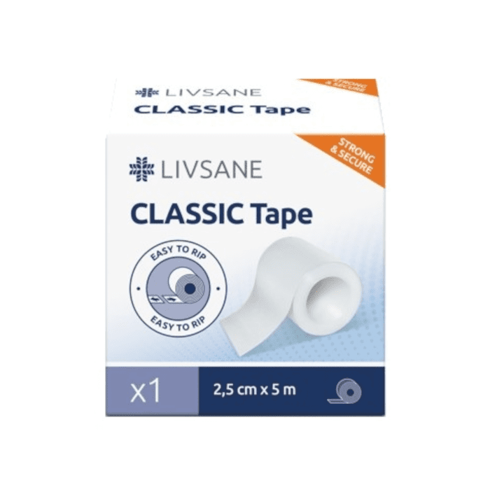 LIVSANE pleistras ritėje 2,5 cm x 5 mLIVSANE pleistras ritėje 2,5 cm x 5 mLIVSANE pleistras ritėje 2,5 cm x 5 m