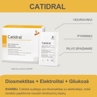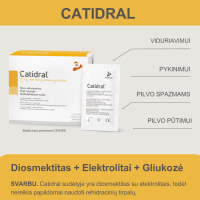 Tokiu būdu CATIDRAL gali sumažinti viduriavimo sukeltos dehidratacijos riziką ir padėti atgauti normalią skysčių ir druskų pusiausvyrą, nes sudėtyje yra subalansuota elektrolitų dozė.