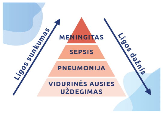 Pneumokokinė infekcija gali sukelti tokias sunkias ligas kaip meningitas, plaučių uždegimas, kraujo užkrėtimas ir dažniausią mažų vaikų ligą – ūmų vidurinės ausies uždegimą.