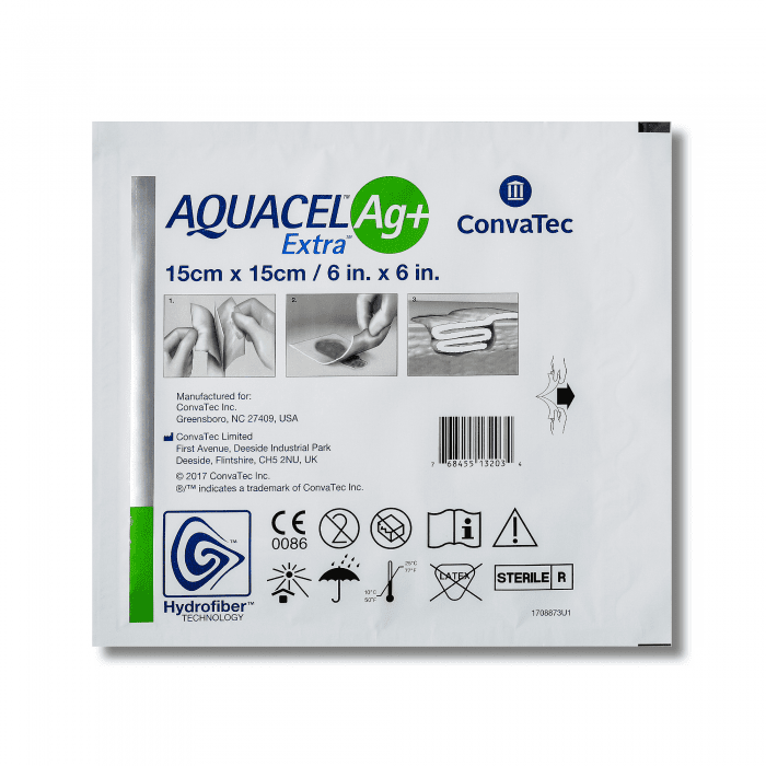 Būtina uždengti antriniu tvarsčiu (pvz., Aquacel Foam, GranuFlex, GranuFlex Extra Thin, Foam Lite ConvaTec).