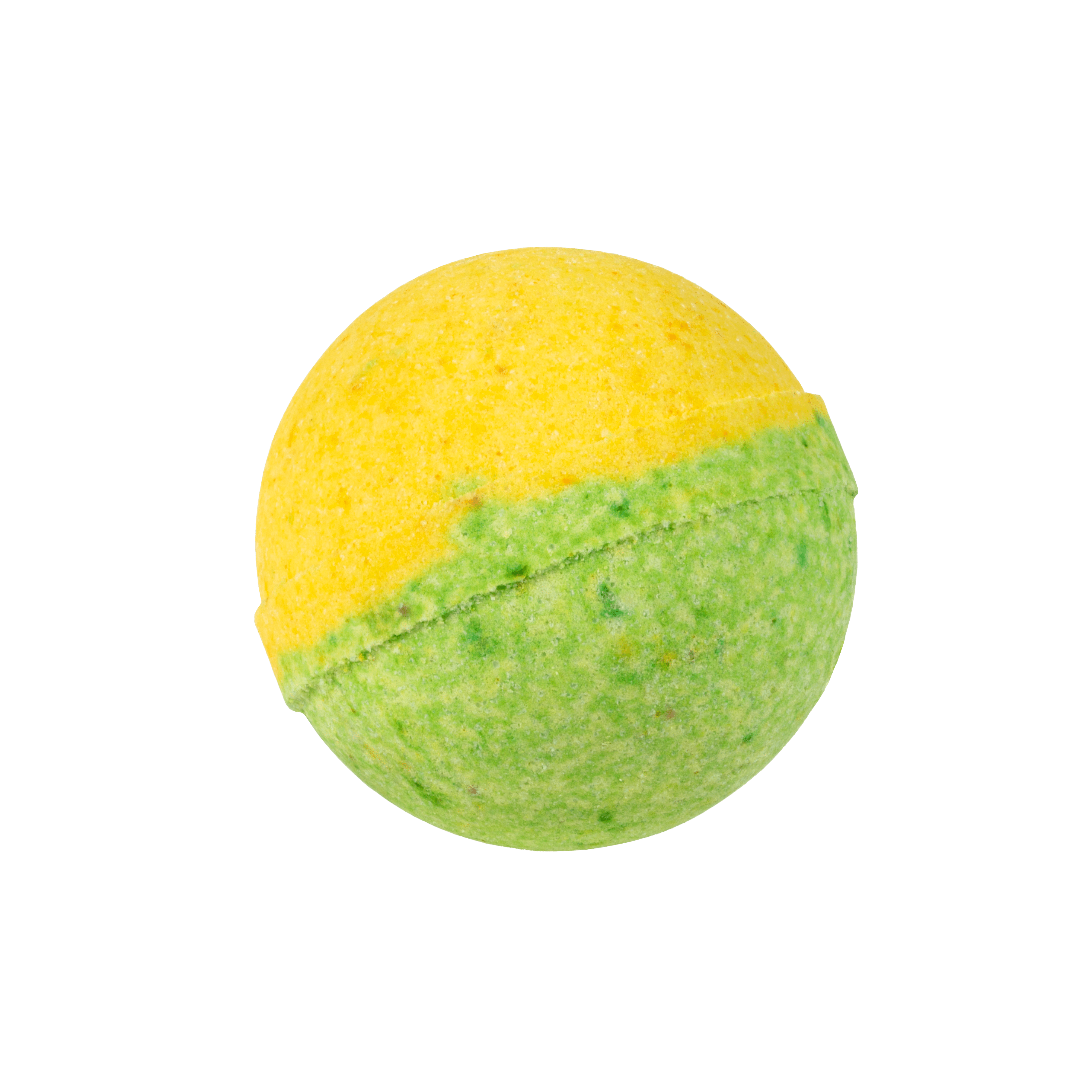 Sodium Bicarbonate, Citric Acid, Zea Mays Starch, Maris Sal, Prunus Amygdalus Dulcis Oil, Polysorbate 80, Aqua, Parfum, CI19140,CI19140/CI42051, *Citronellol, *Geraniol (*kvapiujų medžiagų sudetinės dalys/fragrance ingredients).