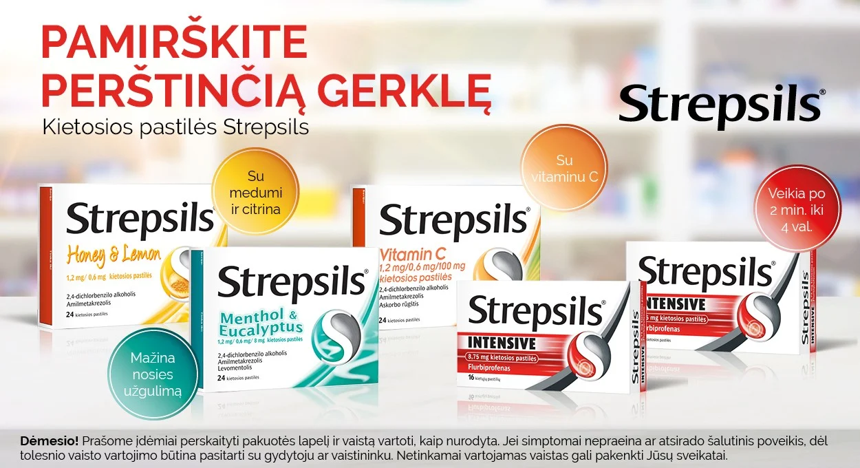 Skaityti daugiauStrepsils Vitamin C 1,2 mg/0,6 mg/100 mg kietosios pastilės