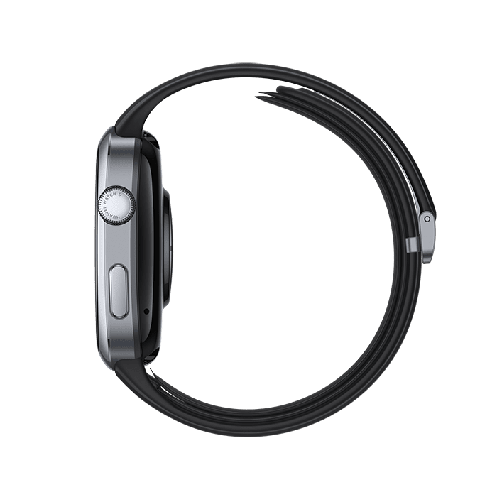 • Dirželis: Inovatyvus 2-in-1 dizainas su 26,5 mm mechanine oro pagalve, pagaminta iš fluoroelastomerio – sugeria prakaitą, ramina odą, lengvai keičiamas.