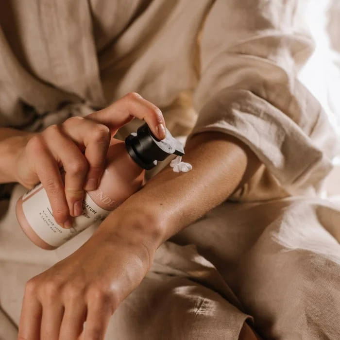 Nusipraususi užsitepk ant kūno nedidelį kiekį kūno pienelio ir lengvais judesiais įmasažuok į odą.