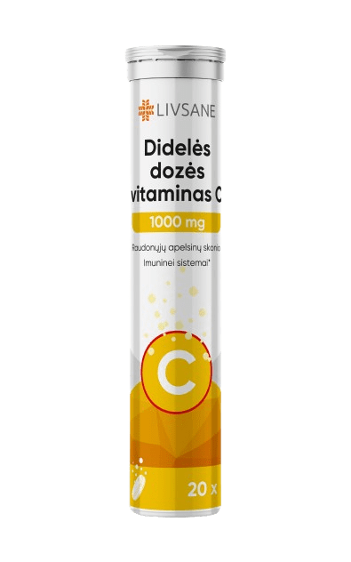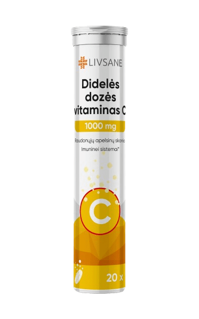 LIVSANE 1000 mg Vitamino C šnypščiosios tabletės N20LIVSANE 1000 mg Vitamino C šnypščiosios tabletės N20LIVSANE 1000 mg Vitamino C šnypščiosios tabletės N20